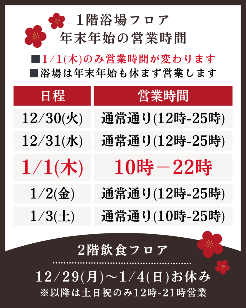◾️浴場は年末年始も休まず営業します