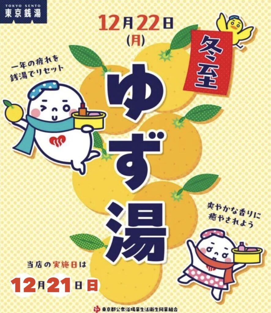 銭湯の大きな浴槽で、さわやかな香りのゆず湯を楽しんでみませんか?
